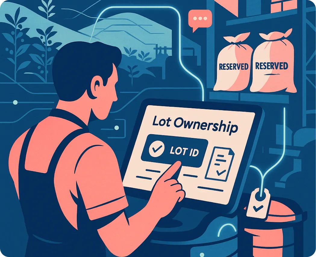 Once your order is placed, our system instantly confirms lot ownership and reserves your coffee directly at the source.
